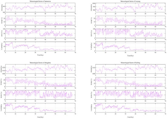 Data variation curves of multiple meteorological factors in Sanmenxia and other weather stations.