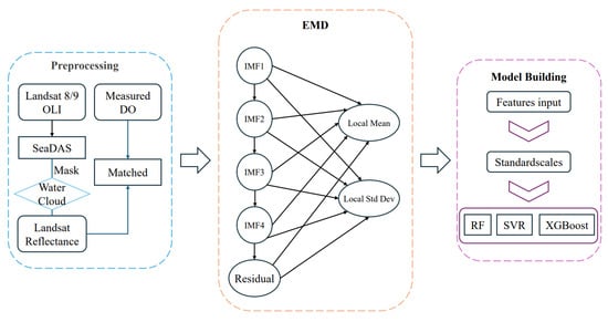 The flowchart of DO estimation using Landsat data and EMD.