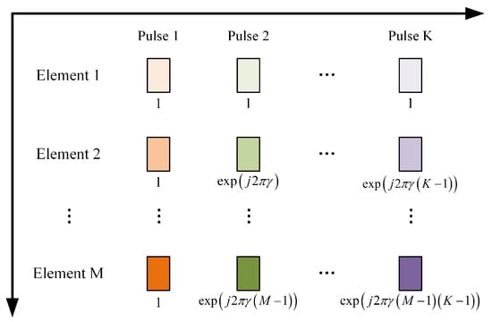 Assume that a far-field target is located at . The echo signal received by the n-th element, originating from the m-th element during the k-th pulse, can be formulated as