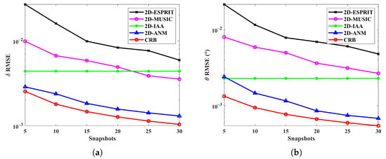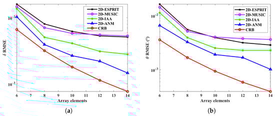 - At the analysis phase, both the Cramér–Rao Bounds (CRBs) for the FDA-MIMO and EPC-MIMO radars are derived. In addition, the Root Mean Square Errors (RMSEs) versus the SNRs are provided to verify the effectiveness of the methods. Furthermore, a comprehensive localization error analysis is carried out.