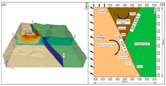 - Numerical simulations demonstrate a consistent correlation between the horizontal displacement pattern and the arcuate structure of the Sichuan–Yunnan block, promoting the counterclockwise uplift of Mt. Gongga. The vertical displacement pattern indicates that this earthquake accelerated the overall uplift of Mt. Gongga.
