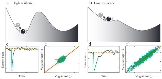 - Scheffer, M.; Carpenter, S.R.; Dakos, V.; van Nes, E.H. Generic Indicators of Ecological Resilience: Inferring the Chance of a Critical Transition. Annu. Rev. Ecol. Evol. Syst. 2015, 46, 145–167. [Google Scholar] [CrossRef]