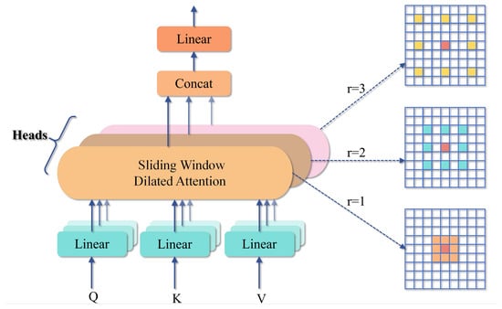 where denote the query, key, and value in order. The dilation rate specific to each head is designated by (e.g., ). The output generated by each attention head is identified as .