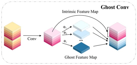 In the current research context of neural network model compression and pruning, extensive research has shown that feature maps generated by many mainstream convolutional neural network architectures often contain rich redundant information, manifesting as highly similar content in some features. Addressing this common phenomenon, GhostNet [33] proposes a viewpoint: these seemingly redundant features are crucial for ensuring certain neural networks achieve high-performance detection, and these features can be generated more efficiently. To achieve this goal, GhostNet [33] introduces the GhostConv module, as shown in Figure 6.