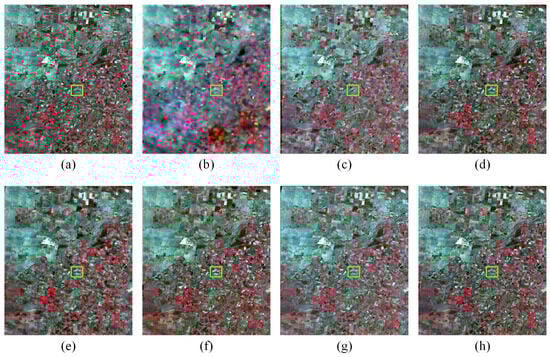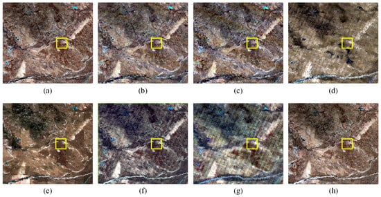Figure 13, GAN-STFM produced the poorest fusion results, and FSDAF exhibited severe spectral distortion. EDCSTFN failed to preserve fine details, while STM-STFNet suffered from both significant texture loss and spectral distortion. Local visualizations in