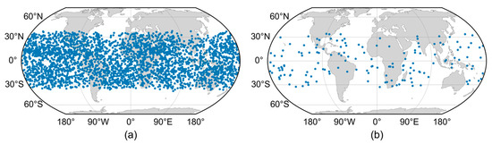 Figure 14 presents the difference maps between the IRI TEC, GCIRI TEC, and CODE TEC over six-hour intervals during the geomagnetic storm on 28 June 2024. During the geomagnetic disturbance, the IRI TEC failed to accurately reflect global ionospheric TEC variations, resulting in significant discrepancies with the CODE TEC. Specifically, the error maps revealed substantial regions of both underestimation and overestimation. This indicates that the IRI TEC model exhibits considerable errors in capturing ionospheric changes during geomagnetic storms. In contrast, the GCIRI TEC more accurately mirrors the true global ionospheric TEC variations, with its distribution aligning more closely with the CODE TEC. Additionally, the GCIRI TEC model significantly reduced the areas of underestimation and overestimation in the error maps, demonstrating a higher level of accuracy.