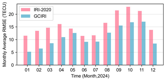 Furthermore, the accuracy of the IRI TEC and GCIRI TEC throughout the year 2024 was compared.