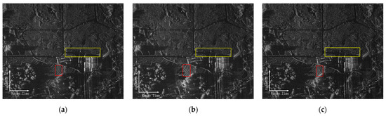 Although the proposed method has a similar target retention effect to the AM&SF method, the proposed method demonstrates superior performance over the AM&SF in ambiguity suppression. The suppression effect of the AM&SF method significantly declines when suppressing ambiguity from different ambiguous zones. The proposed method demonstrates superior performance over the SS&E method in both ambiguity suppression and target preservation. Furthermore, after calculation, there is not much difference between SS&E and the proposed method in terms of resolution maintenance. The azimuth resolution of the proposed method is basically consistent with that of the original image. The primary limitation of the SS&E method lies in its spectral truncation and extrapolation operations, which inadvertently attenuate the energy intensity of the true targets. In contrast, the time-frequency joint method proposed in this paper is designed to preserve true targets while suppressing ambiguities through the time-frequency domain. Compared to conventional time-domain or frequency-domain processing, time-frequency joint suppression is more refined and is able to achieve a better balance between ambiguity suppression and target preservation.
