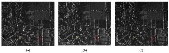 Figure 15c. In contrast, the result processed by the SS&E method exhibits significant degradation of structural features in the building in