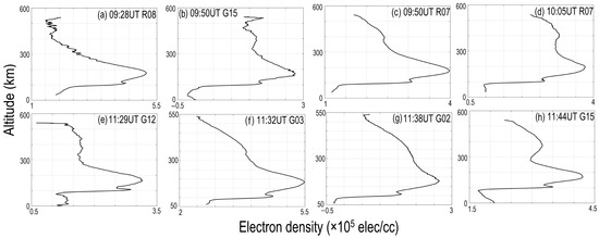 (a–h) Electron density profiles of COSMIC—2 RO on 11 October from 09:00–12:00 UT over the region “C” marked in Figure 4d.