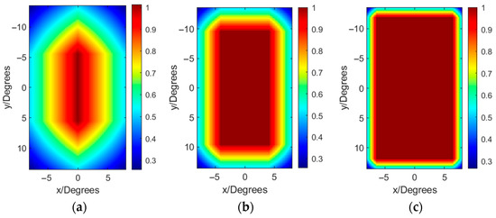 Vignetting maps at different energies: (a) 0.3 keV; (b) 1.0 keV; (c) 2.0 keV.