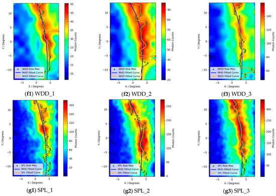 From the fitting curve, it can be seen that the SXI image has more noise, the row maximum value is scattered, the fitting curve is not smooth, and it is difficult to show the position of the magnetosphere boundary directly and clearly. The filtered image’s fitting curve is close to the MHD fitting curve, but it is still not smooth enough. The OUT image has a smoother fitting curve because the high-frequency noise is eliminated.