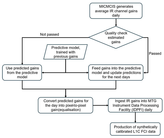The final gains are ingested daily into the MTG-I Instrument Data Processing Facility (IDPF-I, operational Level-0 to Level-1 processor), enabling the production of synthetically calibrated Level-1C FCI data, ready for analysis and operational use. The following sections provide a detailed explanation of each step in the process.