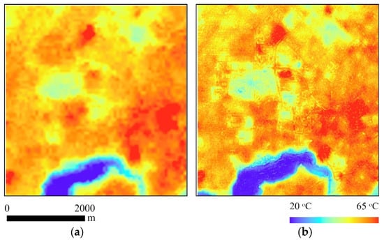 Despite the good performance and high accuracy of the proposed downscaling approach, there is room for improvement, particularly in delineating smaller urban features. Future work should investigate the use of auxiliary data with higher spatial resolution (<10 m) from other optical sensors (e.g., Worldview-3 data) to resolve the temperature variations of smaller urban features such as buildings and narrow roads. Moreover, incorporating more sophisticated algorithms, such as deep learning with spatial features (e.g., geographically weighted deep neural networks), with other factors related to building, such as building density, radiation flux, digital elevation model (DEM), and other parameters related to surface heating and cooling such as thermal conductivity and evapotranspiration, may further enhance spatial accuracy.