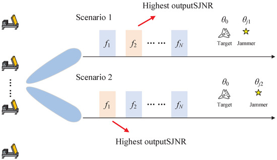 The ultimate objective of optimization in this study is to enhance the output SJNR after jamming suppression. To achieve this, the following frequency selection strategy can be employed: