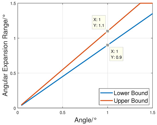Using the multi-frequency mapping method described in Section 2.2, the angular range corresponding to the frequency range can be calculated. Under specific parameter settings, the angular expansion range for each angle at the center frequency is illustrated in Figure 5.