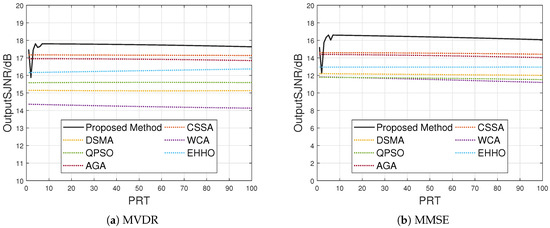 The other parameters are the same as those in the previous subsection. The resulting output SJNRs are shown in Figure 11.