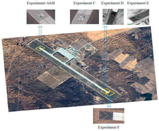As shown in Figure 2, our experimental site is located at an airfield in the northern region of Shaanxi Province, China. We set up a total of six sets of experiments involving three UAV reconnaissance modes and two different imaging sensors. The differential GPS localization value of the target is used as the reference value in the experiment. The DGPS accuracy is <0.5 m horizontal, <0.5 m vertical with an update rate of five times per second. In static target geolocalization scenarios, the target position is considered to be unchanging over time, so the differential GPS reference can be interpolated to ensure that the RMSE is based on consistent time-aligned truth values. We compare the current publicly available optimal algorithm for outdoor long-range geolocalization, VSG [24], but this method is only applicable to a single measurement. We improved the VSG using the Gaussian Newton method [34] so that it can effectively utilize the continuous measurement data to make the target geolocation results more accurate. In six extensive sets of experiments, we compared VSG, VSG + G-N, and different preset parameters of our method.