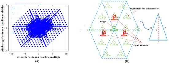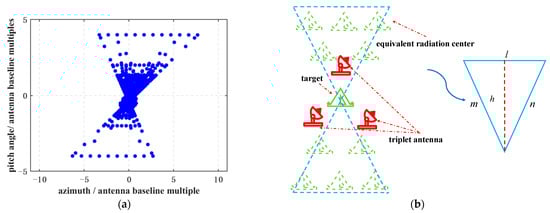 - Establishment of the spatial geometric relationship between the triplet antenna and the target and derivation of the distribution law of the equivalent radiation center of the triplet antenna under the condition of the target echo.
