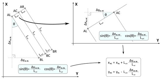 The length of the fixed base () for the corrected coordinates of AC and BC is given by the following relation: