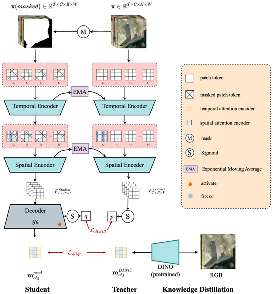 - The student network receives partially masked inputs, where cropland regions are selectively occluded using plot-wise masks.