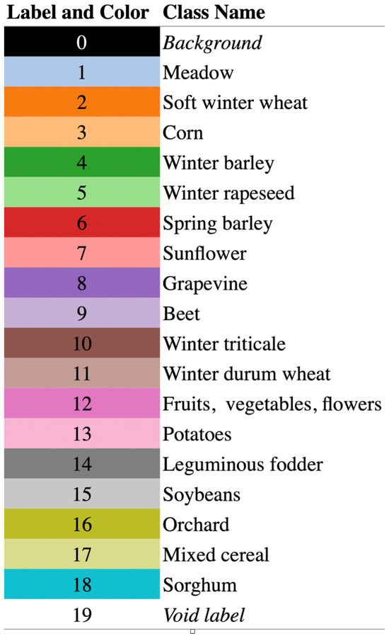 - Rustowicz, R.; Cheong, R.; Wang, L.; Ermon, S.; Burke, M.; Lobell, D. Semantic Segmentation of Crop Type in Africa: A Novel Dataset and Analysis of Deep Learning Methods. In Proceedings of the IEEE/CVF Conference on Computer Vision and Pattern Recognition Workshops, Long Beach, CA, USA, 15–20 June 2019; pp. 75–82. [Google Scholar]