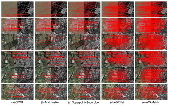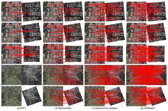 - Extensive experiments on multiple public optical–SAR datasets validate the superiority of ACAMatch in terms of the number of correct matches, matching accuracy, and registration precision compared to existing state-of-the-art methods.