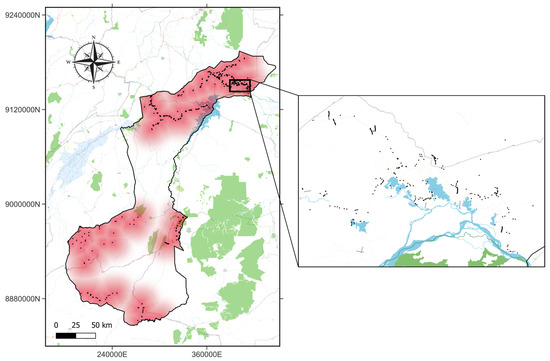 In addition, three topographic and anthropogenic variables were sourced from the Digital Earth Africa (DE Africa) Sandbox platform (https://www.digitalearthafrica.org/, accessed on 7 April 2025): elevation, distance to water sources, and distance to infrastructures (used as a proxy for human disturbance).