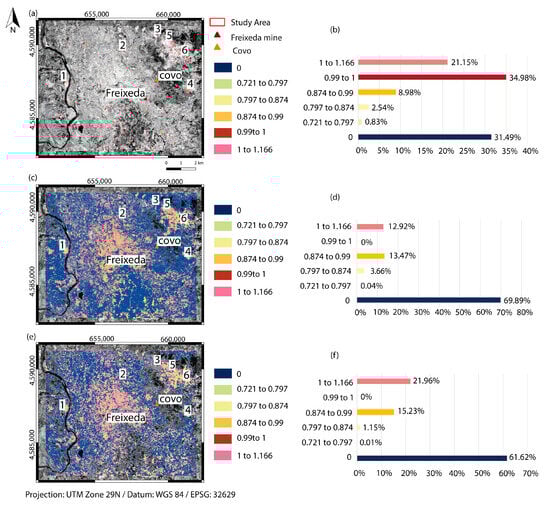 - Santos, D.; Cardoso-Fernandes, J.; Lima, A.; Teodoro, A.C. Application of Band Ratios to Map Hydrothermal Alteration Zones Related to Au-Sb Mineralization in Freixeda, Northern Portugal. In Proceedings of the Earth Resources and Environmental Remote Sensing/GIS Applications XV Location, Madrid, Spain, 15–18 September 2024; Volume 13197, pp. 1–9. [Google Scholar] [CrossRef]
