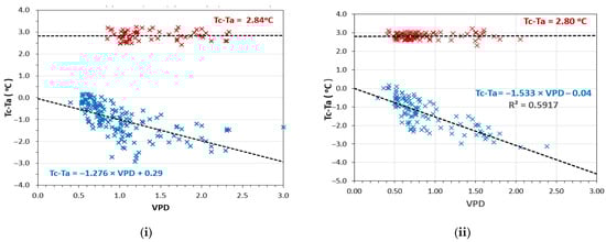 (i) CWSI lower and upper baseline estimation in the watermelon crop; (ii) CWSI lower and upper baseline estimation in the potato crop.