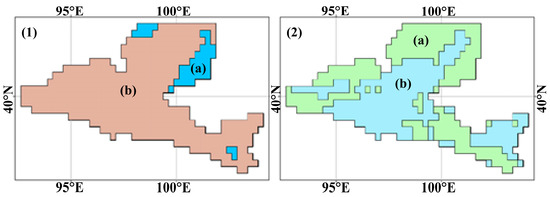 The clustering results (Figure 4) showed that hierarchical clustering using DTW distance partitioned the 0.25° × 0.25° groundwater storage data into two subregions, with sample distributions of 390 and 70, respectively. Similarly, the K-means clustering method, also using DTW distance, divided the dataset into two subregions with sample allocations of 260 and 200, respectively. Both methods effectively captured the morphological characteristics and spatial differentiation patterns of groundwater storage time series, despite exhibiting some differences in the resultant partitioning boundaries. These findings highlighted the advantages of DTW distance metrics in characterizing non-linear variations and temporal distortion features in time series data, providing a more robust spatial partitioning foundation for the development of downscaling models.
