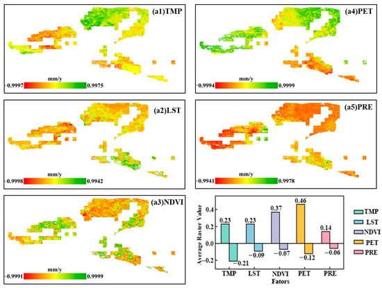 where indicates the relative contribution of the driving factor, represents the absolute contribution, is the regression coefficient, and corresponds to the normalized change trend of the driving factor.
