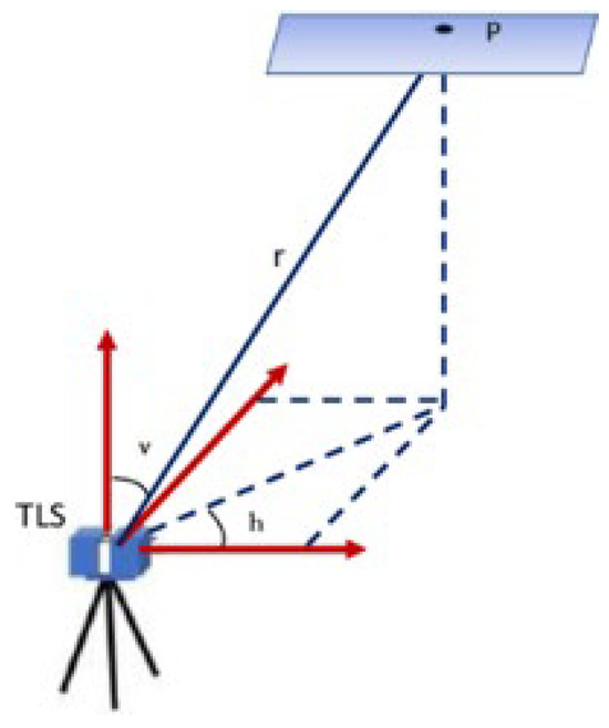Graphical representation of the spherical coordinate system of the TLS [26].