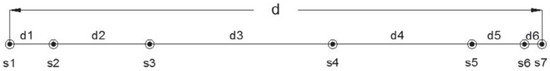 A total of 21 distances (e.g., d1 to d6) were recorded starting at Station 1 (s1) and proceeding rightward to Station 7 (s7) on the site, and through a developed least square by comparison with the known nominal distance a10 and other empirical bias (irrespective of the measured distance), were determined. This research also resolved one correction factor of horizontal angle (i.e., using the resection technique including four targets located in approximately the same horizontal plane and the fifth target set up at a different level) and two correction factors of vertical angle—vertical index and vertical scale error (with the aid of establishing six targets each 50 cm apart on a single vertical staff) [87].