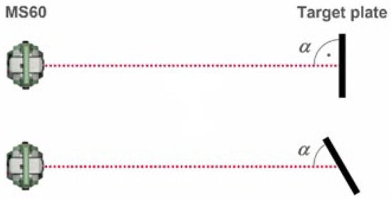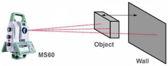 The evaluation of the TLS via the International Organization for Standardization (ISO) was the other opportunity for component calibration [87]. The method for the range calibration was completed using the test line with a known nominal distance (Figure 6), which is a promising practice for EDM calibration.