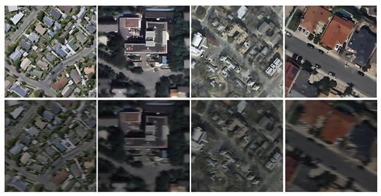 The images from left to right illustrate the datasets WHU, DZU, INRIA, and AutoBuildRS before and after perturbation.