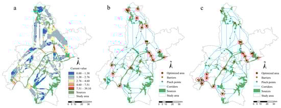 - Gao, C.; Pan, H.; Wang, M.; Zhang, T.; He, Y.; Cheng, J.; Yao, C. Identifying priority areas for ecological conservation and restoration based on circuit theory and dynamic weighted complex network: A case study of the Sichuan Basin. Ecol. Indic. 2023, 155, 111064. [Google Scholar] [CrossRef]