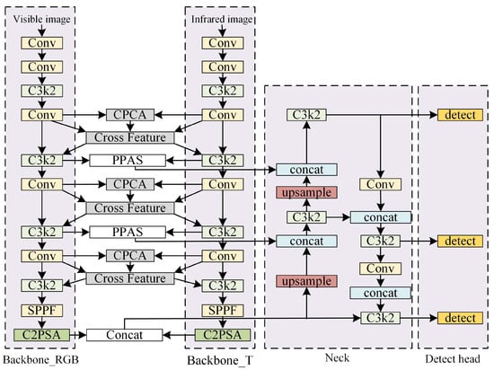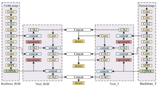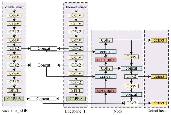 Finally, we design an RGB-Thermal fusion detection model, named CP-YOLOv11-MF as shown in Figure 10.