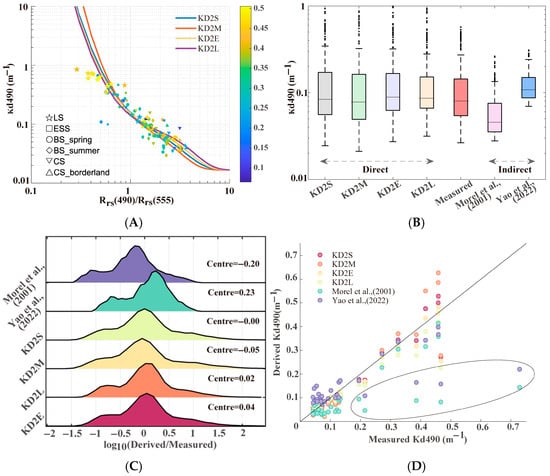 - Xing, X.; Boss, E.; Zhang, J.; Chai, F. Evaluation of ocean color remote sensing algorithms for diffuse attenuation coefficients and optical depths with data collected on BGC-Argo floats. Remote Sens. 2020, 12, 2367. [Google Scholar] [CrossRef]