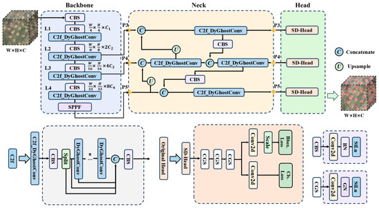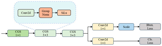 Irrespective of the batch size, GN effectively substitutes batch normalization (BN) while significantly enhancing the performance and accuracy of the detection model. Therefore, a new detection head, named the Siblings Detection Head (SD-Head), is proposed (Figure 6). The proposed detection head no longer employs multiple convolutions for each scale. Instead, feature maps P3, P4, and P5 share a common convolution module, reflecting their sibling-like characteristics. The shared convolution module in SD-Head operates as follows: