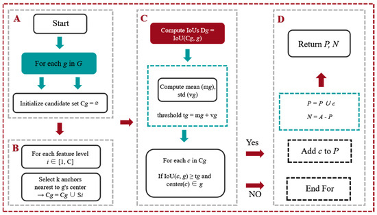 The principle of Adaptive Training Sample Selection. Note: A–D represents the order of ATSS execution.