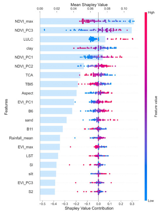 - Contribution of Features: SHAP value analysis and feature importance rankings identified Vegetation Type Factors as the most influential predictor of soil salinity, surpassing the explanatory power of traditional salinity indices in vegetated regions. Other important variables included clay content, LULC, TBI, and TCA, all of which contributed substantially to explaining spatial variations in soil salinity.