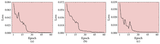 Convergence curve of WSCDNet on (a) the Hermiston, (b) the Yancheng, and (c) the Urban datasets.