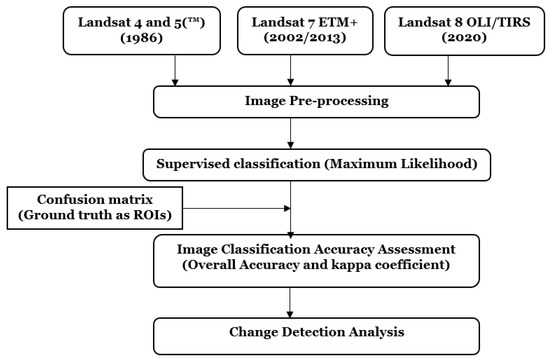 The workflow of the land use/cover change detection analysis.