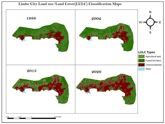 LULC in Limbe City between 1986 and 2020 (classification maps).
