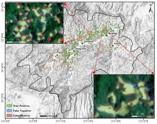 Based on the matrix, the overall accuracy (OA) was calculated as 99.15%, with a Kappa coefficient of 0.82. These metrics indicate substantial consistency between the automated extraction results and the manual interpretation. Furthermore, the precision and recall rates were 78.99% and 85.32%, respectively.