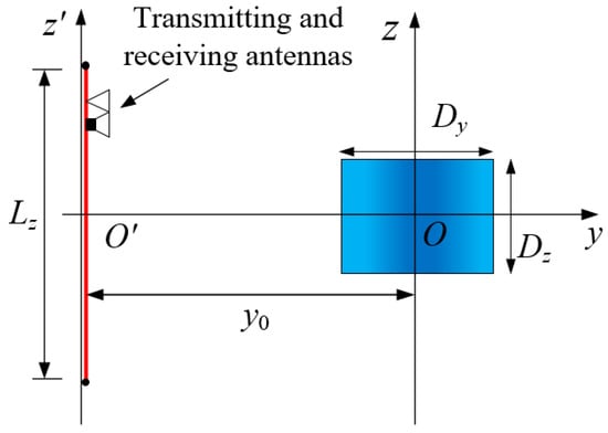 where is the center wavelength of the antenna, is the length of the scanning rail, and is the vertical distance from the rail to the target origin.