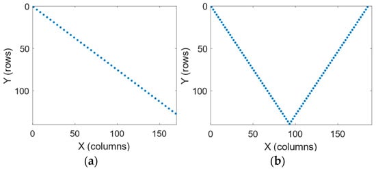 The sampling trajectory of the proposed method. (a) The linear and (b) “V”-shaped trajectories.