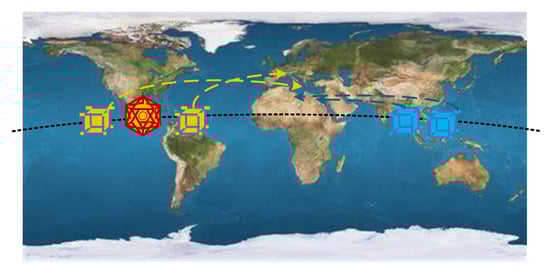 - Fei, H.; Zhang, X.; Long, J. Towards Multi-Satellite Collaborative Computing via Task Scheduling Based on Genetic Algorithm. Aerospace 2023, 10, 95. [Google Scholar] [CrossRef]