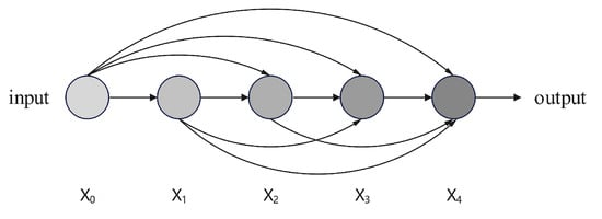 Huang et al. (2017) [72] introduced DenseNet, building on the principles of ResNet. Unlike ResNet, DenseNet employs a more radical dense connectivity mechanism, where every layer is connected to all previous layers. Specifically, each layer receives the outputs of all preceding layers as additional inputs as illustrated in Figure 4. This dense connectivity promotes feature reuse, enhancing the network’s efficiency and improving performance by reducing the parameters required to achieve high accuracy. DenseNet achieves comparable accuracy to ResNet on the ImageNet classification dataset while requiring less than half the number of parameters and about one-third of the computational resources to reach the same performance. In DenseNet, the features extracted from each layer serve as nonlinear transformations of the input data (Figure 5), with the complexity of these transformations increasing as the network depth grows (due to the accumulation of nonlinear functions). Unlike traditional neural networks, which rely on the most complex features from the final layer, DenseNet leverages features from earlier layers with lower complexity. This allows DenseNet to create a smoother decision function, leading to better generalization performance. DenseNet exhibits strong resistance to overfitting, making it particularly suitable for datasets with limited samples.
